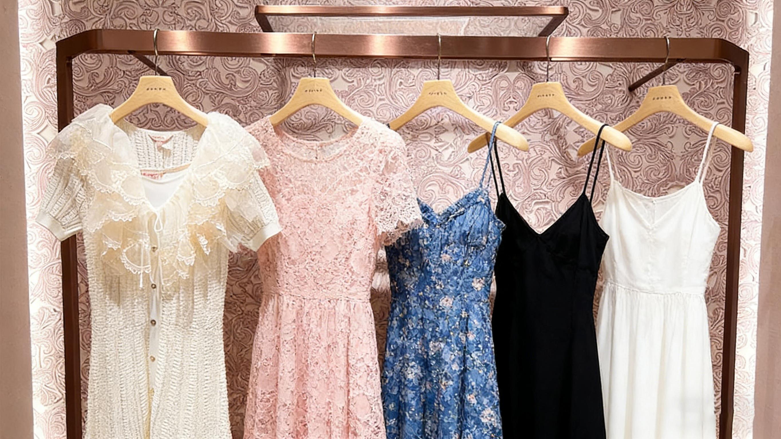 Cheongsam-style dress with bead embellishments, bow detail, lace, and puff sleeves